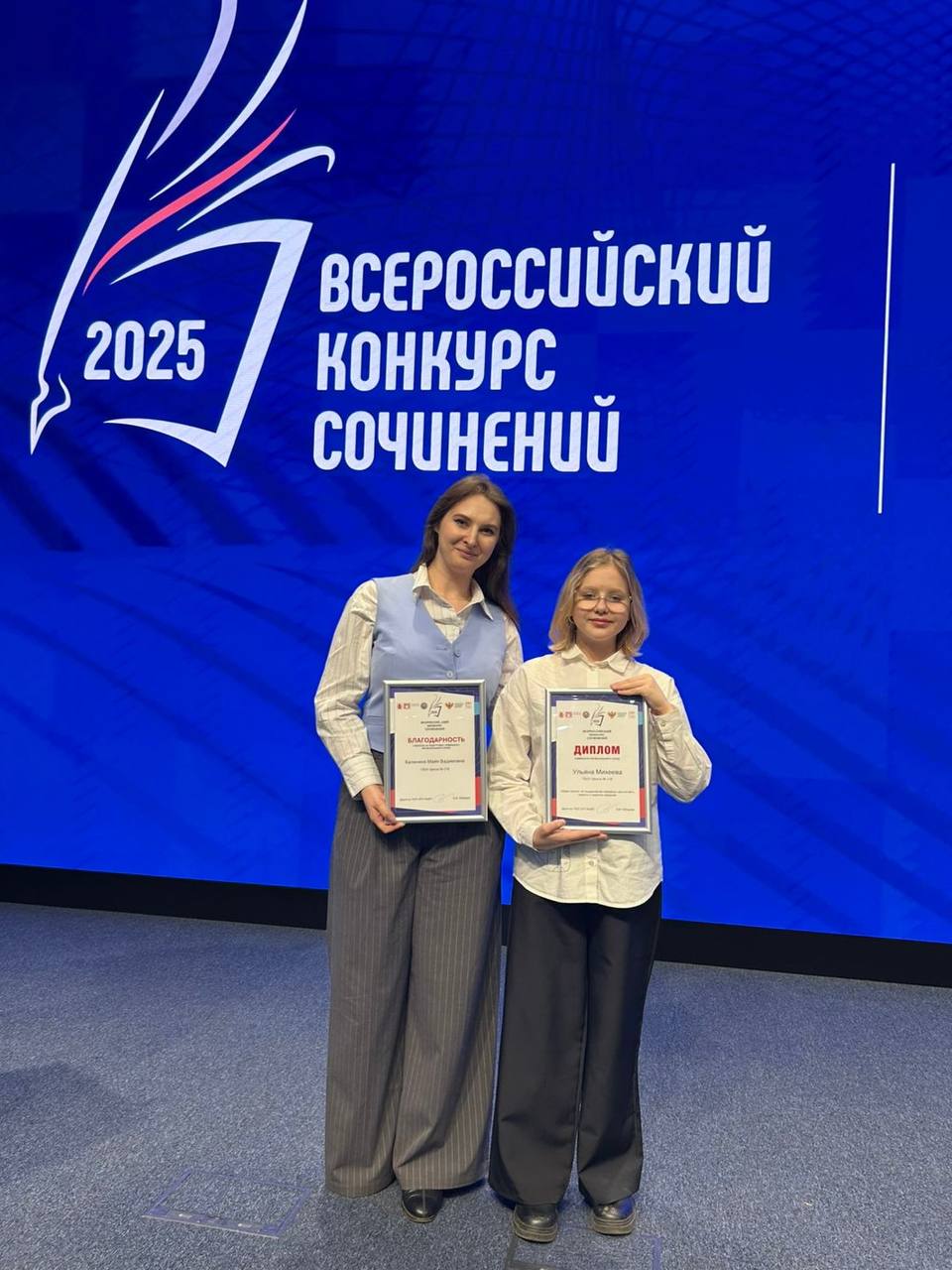 Среди Ульяна Михеева, ученица 5-Г класса, выпускница учителя начальных классов Вайсберг Дарьи Андреевны и ученица учителя русского языка и литературы Калининой Майи Вадимовны, победила в отдельной номинации "Маяк памяти: за поддержание семейных ценностей в памяти о подвигах предков".