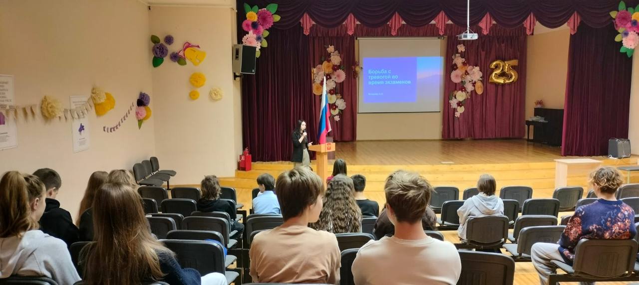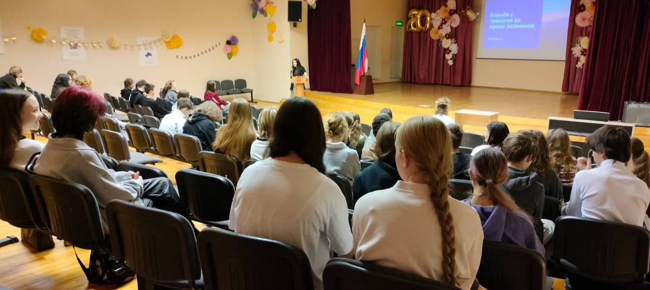На неделе психологии Вихрова Александра Сергеевна провела в 9-ых классах классный час, посвященный стрессу перед экзаменами.