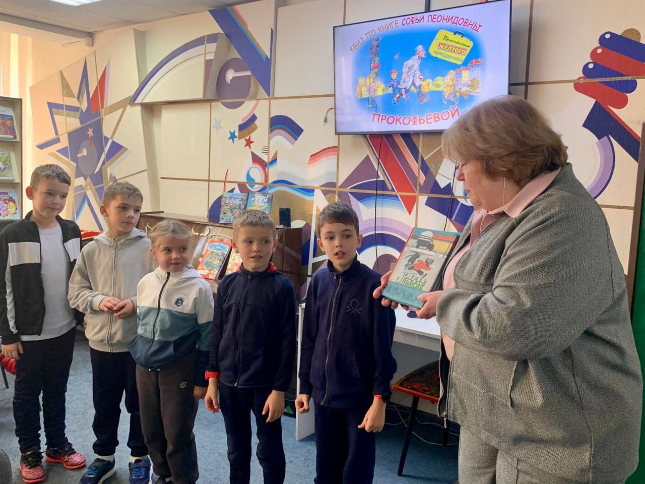 2-В вместе со своим учителем Алимовой Екатериной Владимировной побывали в библиотеке №23 имени М. Горькова на квизе по произведению С.Л. Прокофьевой «Приключение желтого чемоданчика».